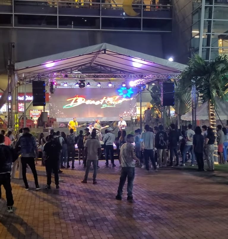 Ayapel: Tarimas resistentes, sonido claro e iluminación confiable para eventos al aire libre.